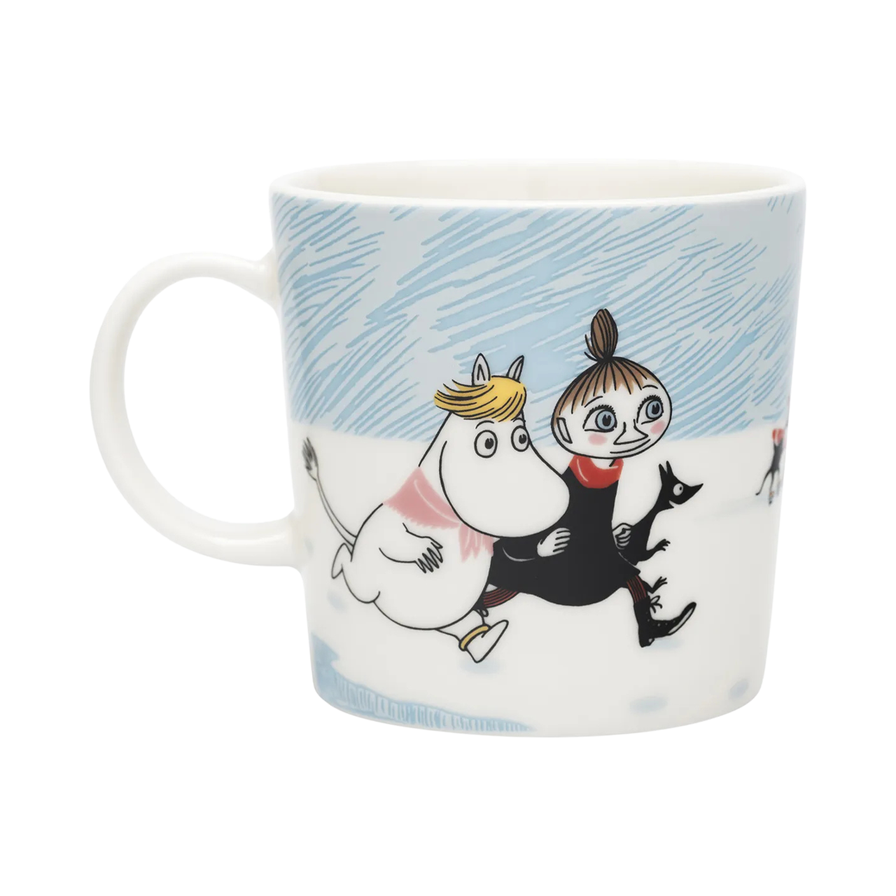 A frosty dive into Moominvalley fun, this light-blue mug features Mr. Brisk’s secret to staying fit: ice swimming. As Mymble and Snorkmaiden cheer on his athleticism, even Moomintroll can’t resist plunging into the icy water. Part of a limited edition Winter Seasonal Collection, this 10 oz mug celebrates Moomin’s winter sports adventures for the final time. Crafted from durable vitro porcelain and safe for microwave, oven, freezer, and dishwasher use, it brings playful storytelling and wintry charm to every coffee, tea, or hot cocoa moment.
