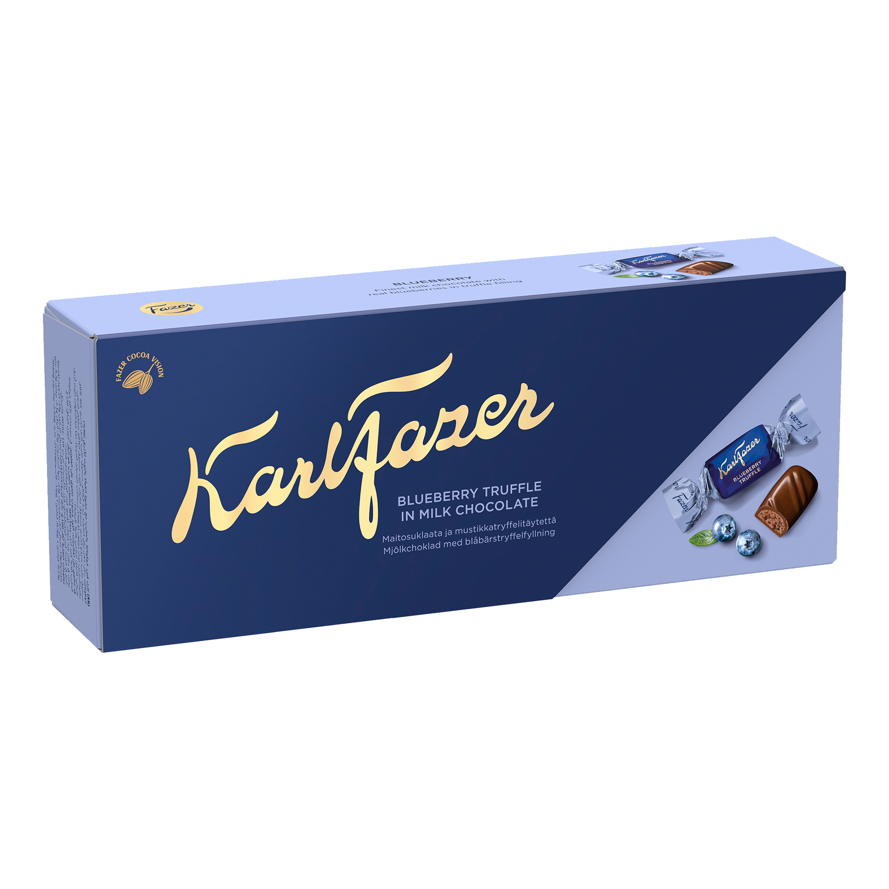 Fazer Blueberry Truffle Milk Chocolates come in a large 270g box, featuring an irresistible combination of Finland's favorite milk chocolate and velvety blueberry truffle filling. Perfect for sharing, gifting, or stocking up your candy dishes.