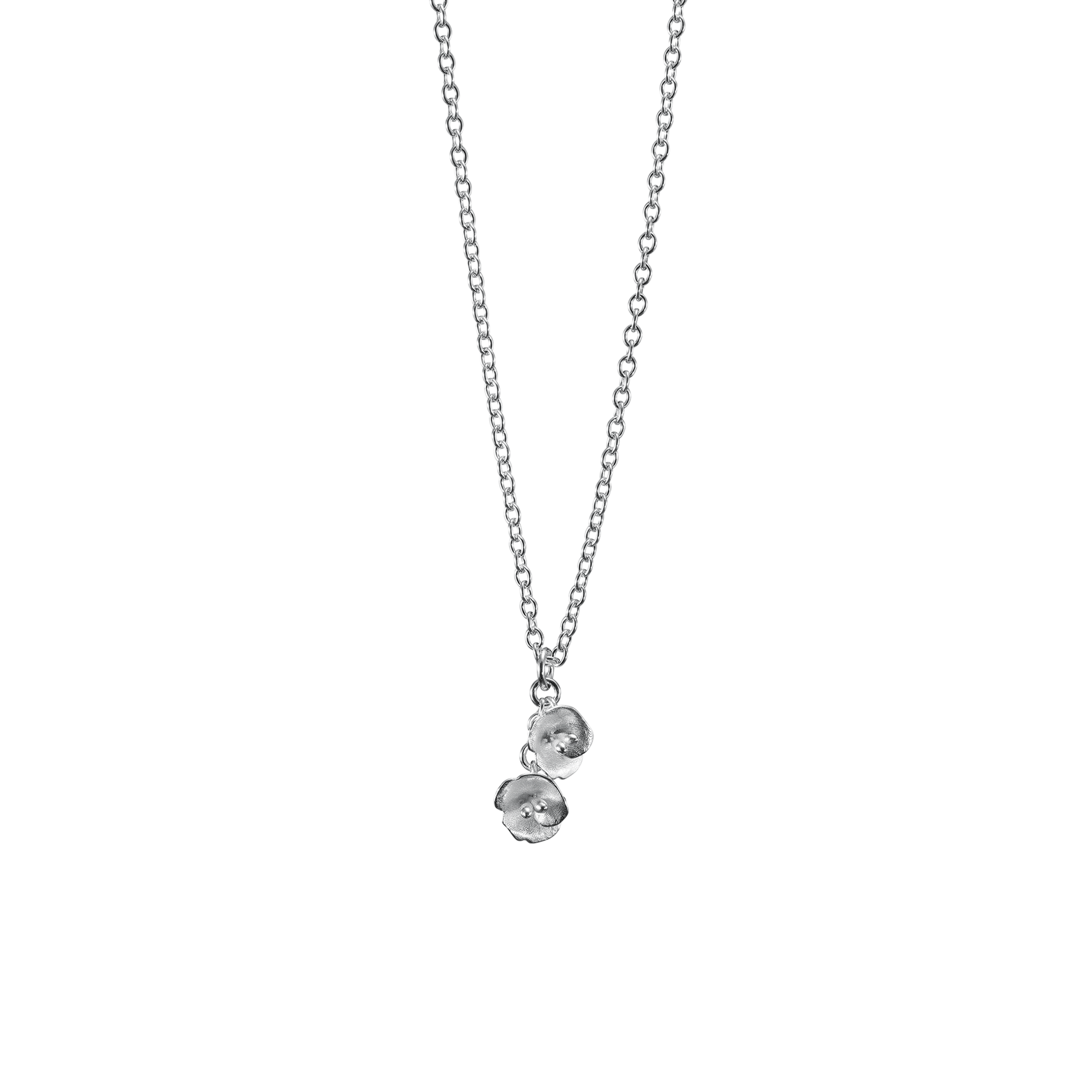 The quiet romance of a Finnish summer night lives on in the Summer Night Rose silver necklace. Two tiny sculptural roses hang together, capturing the delicate beauty of blooms that open under the soft northern twilight. Designed by Anni Ruuth, known for her refined bridal creations, the pendant reflects a love of subtle detail and timeless elegance. Handcrafted in Finland from recycled silver, it rests on an adjustable anchor chain for effortless layering. A spring ring clasp keeps it secure and comfortable, making this necklace a gentle, poetic companion for everyday wear.