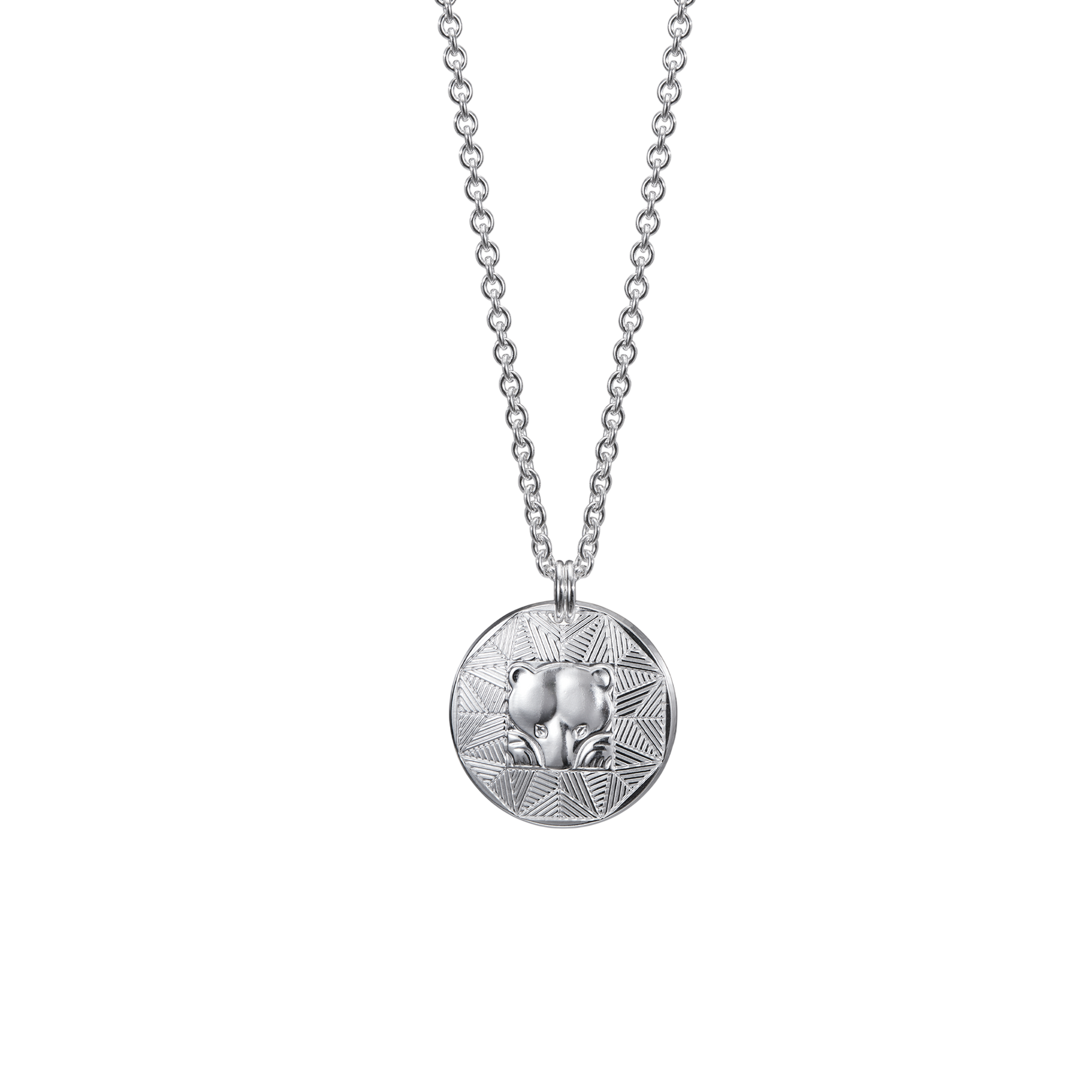 The spirit of the forest lives within this powerful Bear Amulet Necklace. Rooted in ancient Finnic symbolism, the sculpted bear head represents strength, protection, and deep wisdom—qualities long associated with the king of the Nordic woods. Handcrafted in Finland from recycled sterling silver, the round amulet features richly textured detailing and a hollow reverse that echoes the pattern in negative relief. Worn alone or layered with other charms, it becomes a personal talisman with meaning. Designed by Lina Simons, this piece connects modern life to Finland’s oldest stories through enduring craftsmanship.