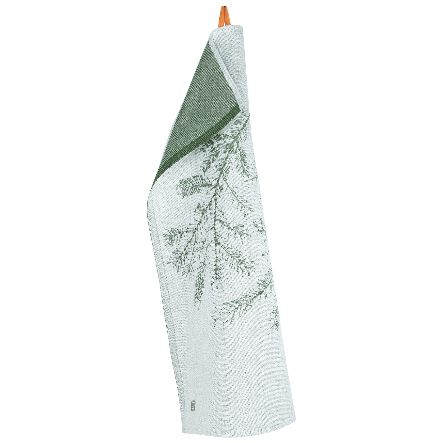Soft evergreen branches create a gentle reminder of quiet walks in the Finnish forest. Designed by wilderness artist Teemu Järvi and woven in Finland, this linen and cotton towel is naturally absorbent, quick-drying, and designed to soften beautifully with use. Hang it in the kitchen or bath to bring a calm, nature-inspired touch to your home. Practical to use every day—and lovely enough to leave on display.