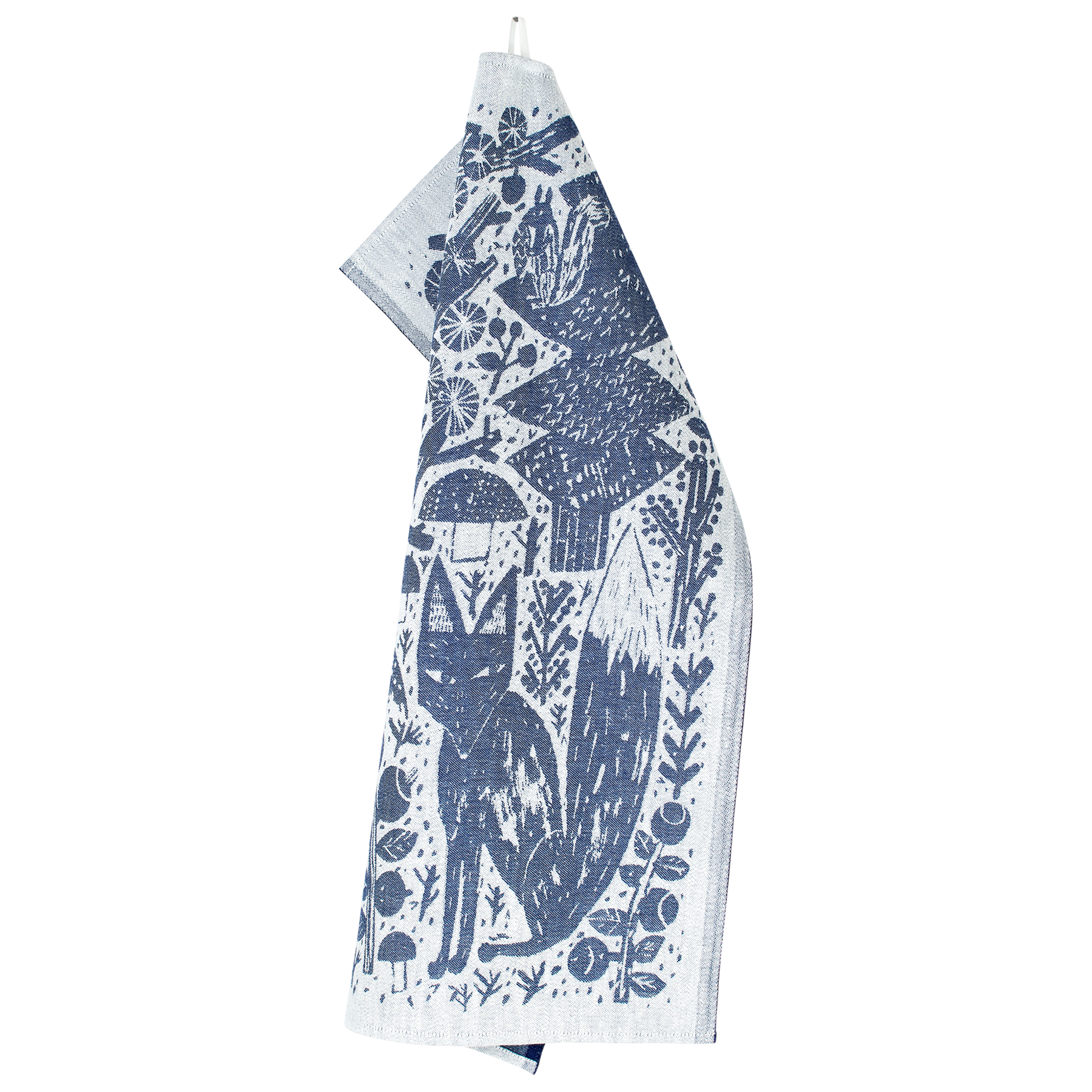 A lively forest scene comes to life in the Metsikkö towel, where foxes, squirrels, birds, and mushrooms gather among tall pines. Illustrated by Matti Pikkujämsä, the design has a warm, storybook charm that feels both whimsical and rooted in Finnish nature. Woven in Finland from 100% washed linen, the towel is light, absorbent, and quick to dry—perfect for everyday use in the kitchen or bath. A delightful piece that brings a touch of the forest indoors.