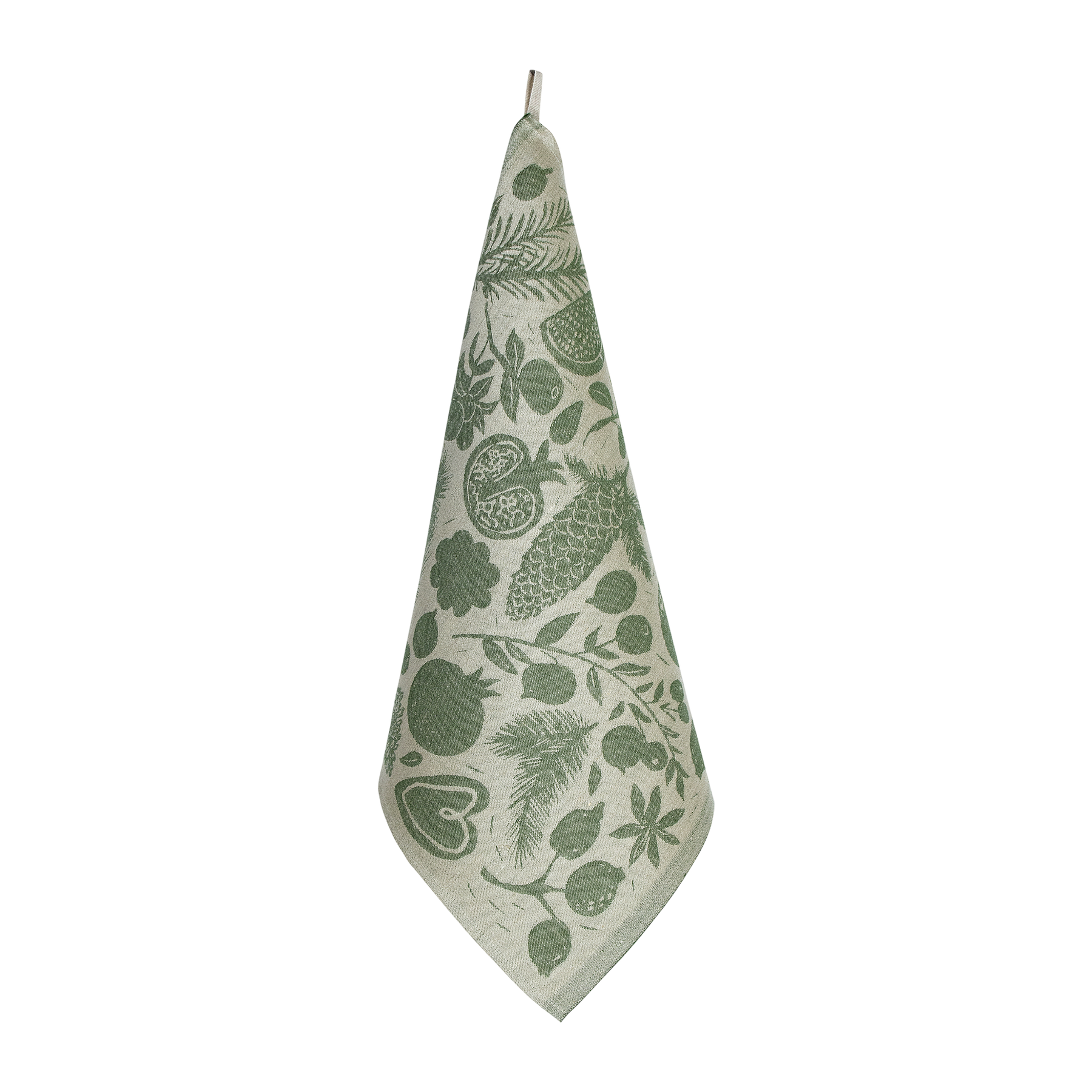 A cozy hint of winter greenery brings charm to everyday dining. Designed by Saara Obele, the Talven Tuoksut (“Scents of Winter”) napkin features pine, berries, and seasonal botanicals in a soft, woven pattern. Made in Finland from a washed linen and cotton blend, it’s durable, absorbent, and easy to care for. Use it at the table, line a bread basket, or set it out as a small kitchen towel—simple, beautiful, and wonderfully versatile.