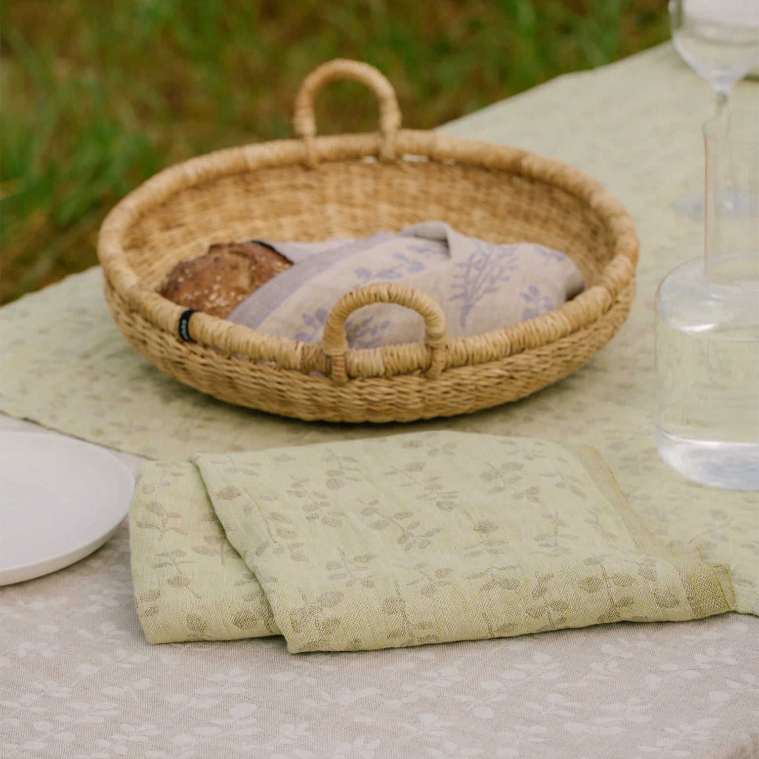 A gentle scattering of leafy stems creates a soft, garden-fresh texture across the Meirami towel (“Meirami” means marjoram in Finnish). Designed by Elina Helenius and woven in Finland from 100% washed linen, it has a beautifully relaxed feel—light, highly absorbent, and quick to dry. The subtle olive-linen tone brings a natural, easy warmth to kitchen or bath, like keeping a small herb pot on the windowsill. A simple everyday favorite that gets softer with time.