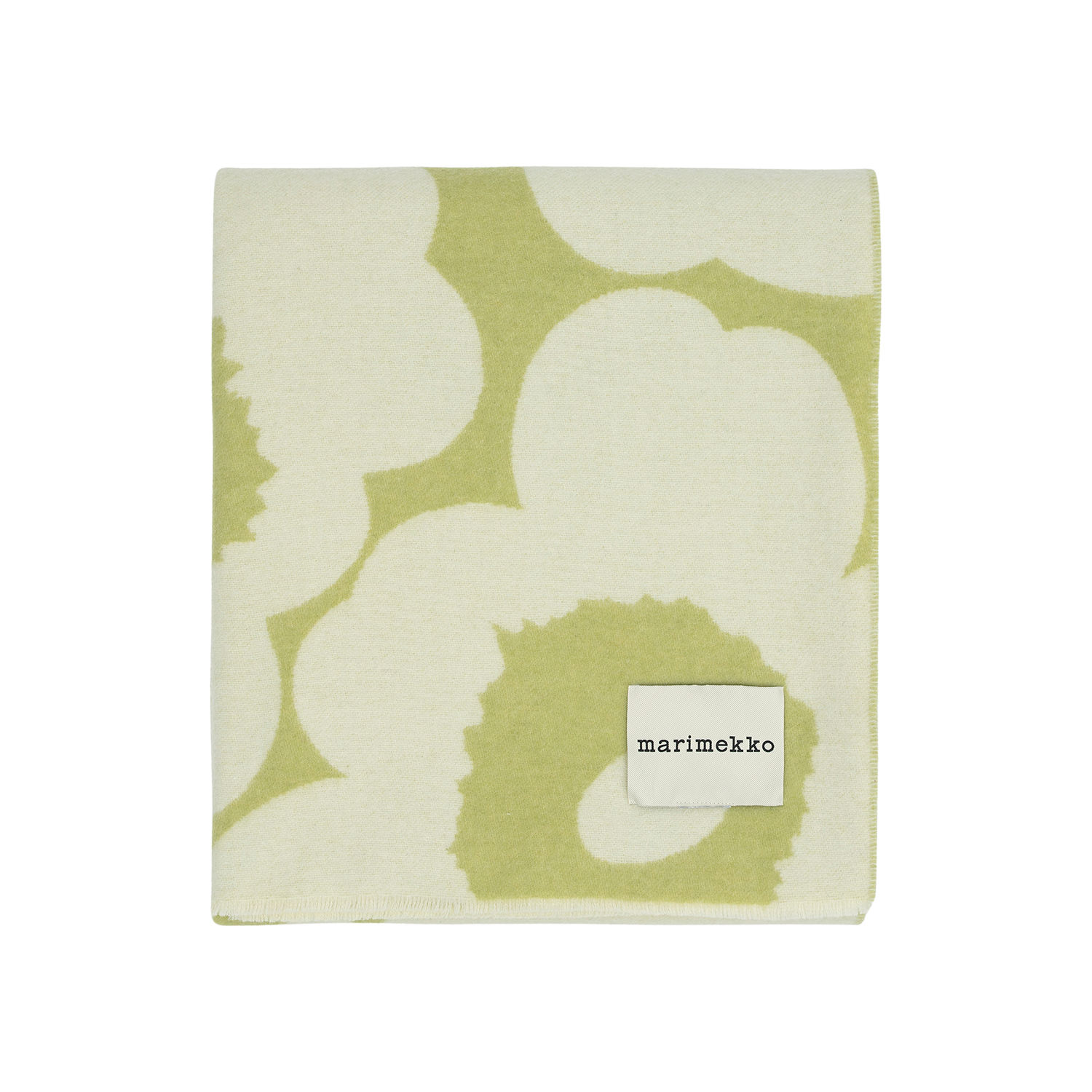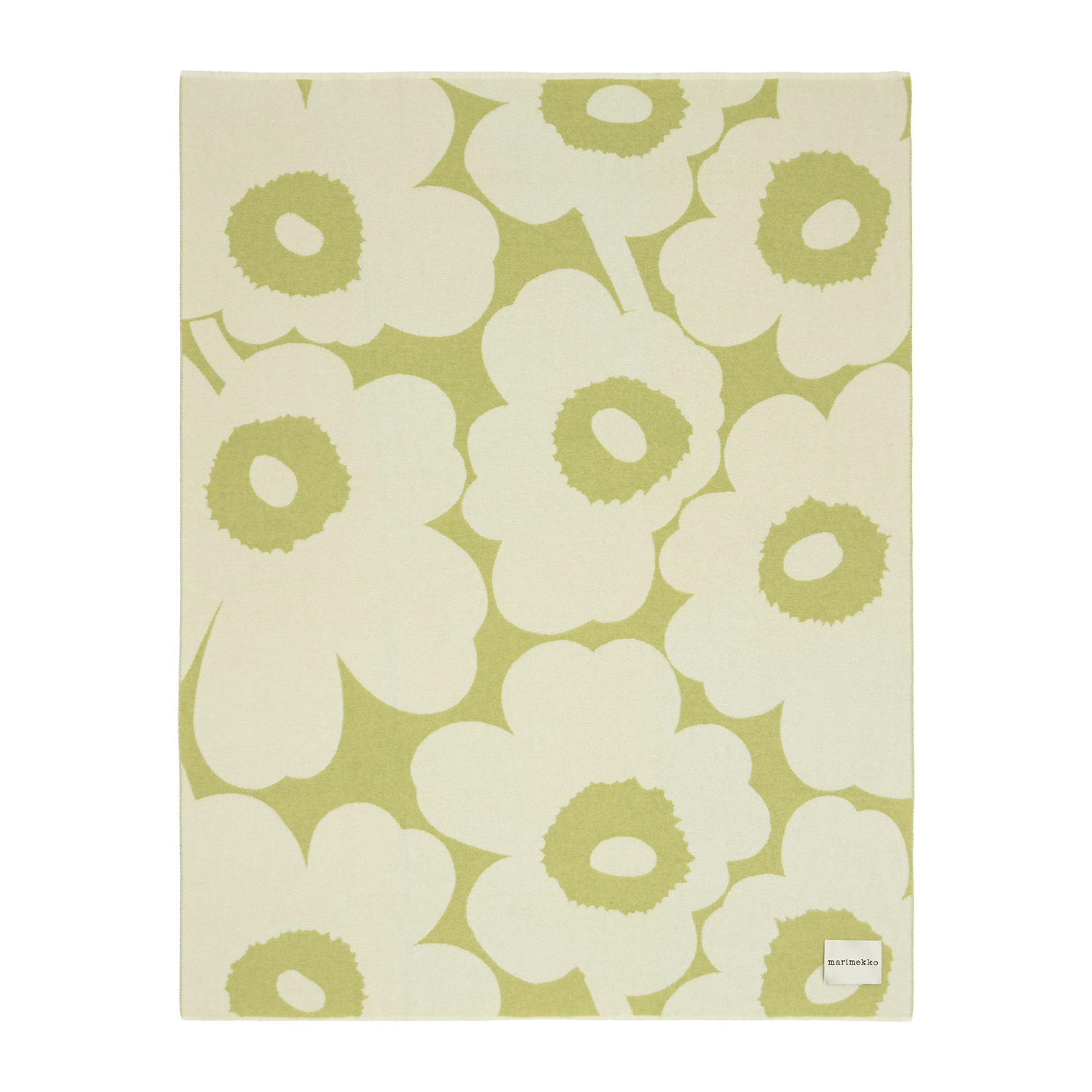 A soft expression of Finnish design heritage, this Unikko blanket brings warmth and quiet character to everyday living. The iconic floral pattern, created by Maija Isola in 1964, appears in a fresh pear and off-white palette that feels calm yet unmistakably Marimekko. Woven as a jacquard knit, the wool blend offers cozy weight and lasting durability, with recycled fibers adding a thoughtful, sustainable touch. Draped over a sofa or layered at the foot of the bed, it’s the kind of piece that makes a home feel instantly more inviting.