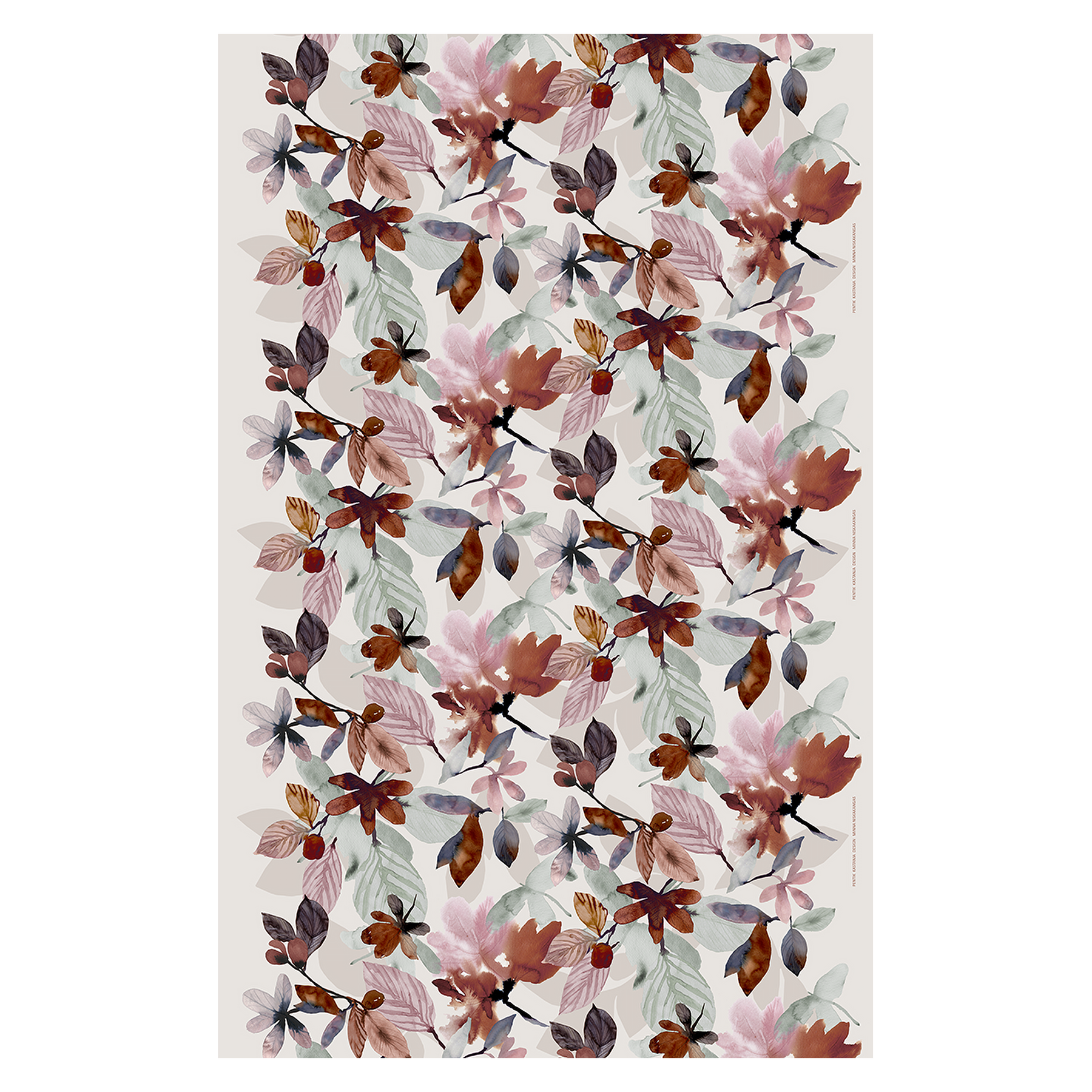 Warm chestnut leaves drift across the Pentik Kastanja Coated Runner, bringing the richness of autumn indoors. Designed by Minna Niskakangas, the hand-painted pattern combines earthy terracotta browns with soft pastel accents, creating a look that feels both bold and inviting. Made from 100% cotton with a practical acrylic coating, this fabric is perfect for everyday dining—it resists spills, wipes clean with ease, and can be machine washed when needed. With Kastanja, you can enjoy a touch of Finnish autumn charm all year round.