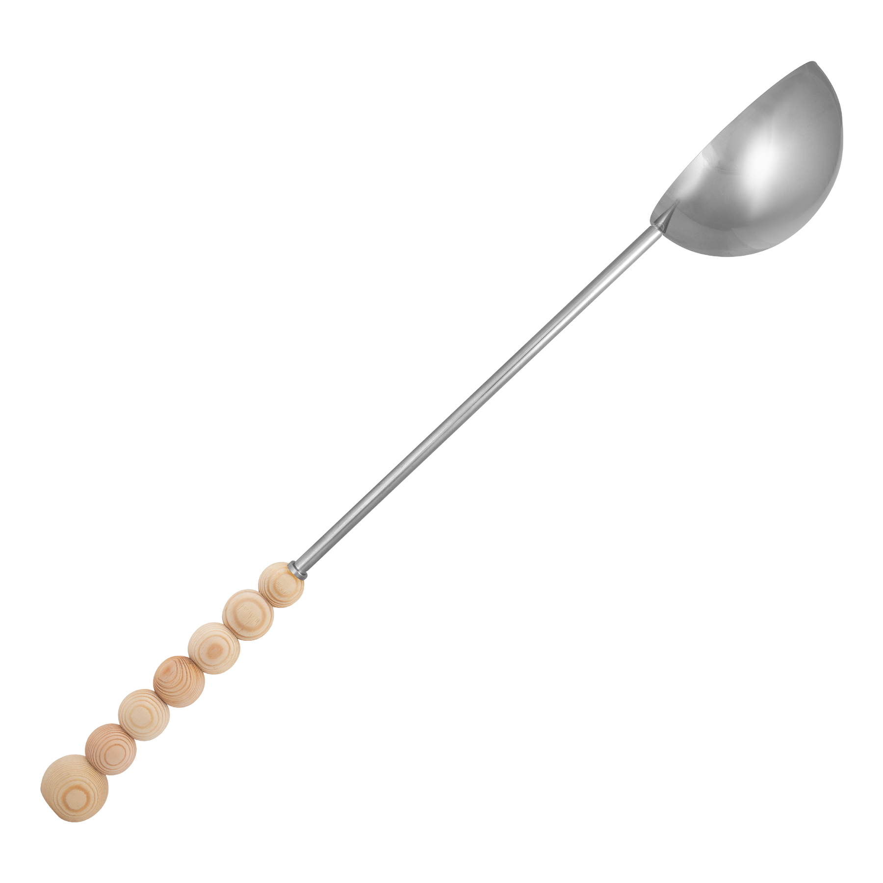 The Nuppu Sauna Ladle turns an everyday sauna ritual into a moment of simple elegance. Its metal scoop is complemented by a 19" handle adorned with varnished maple beads, adding warmth and tactile charm. It reflects Aarikka’s love for craftsmanship, sustainability, and thoughtful details. Perfect for ladling water onto hot stones, Nuppu blends functionality with Nordic beauty, making every sauna visit a quiet celebration of tradition and design.