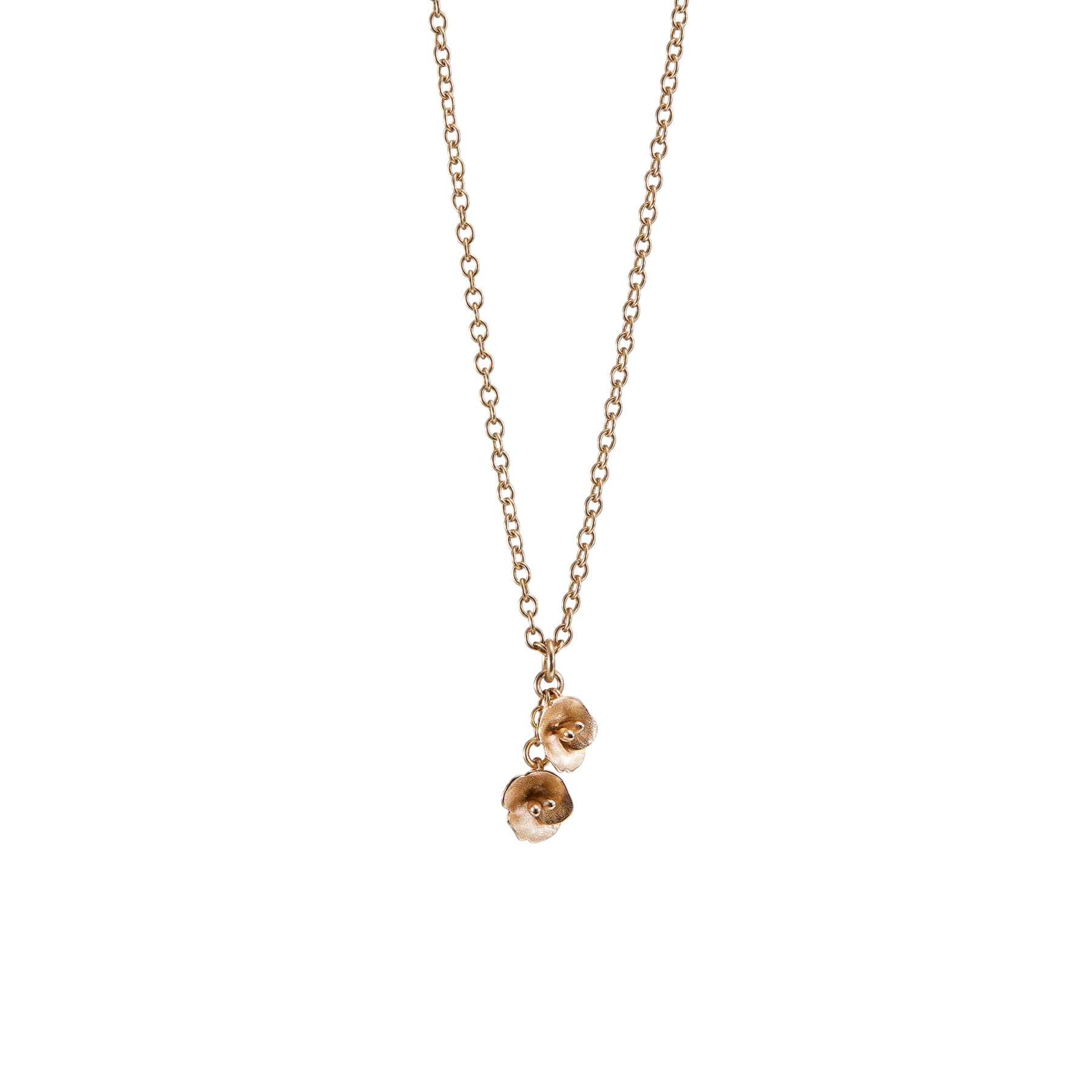 The warm glow of a Finnish summer evening lives on in the Summer Night Rose bronze necklace. Two tiny sculptural roses hang side by side, capturing the fleeting beauty of blooms that open beneath the soft northern twilight. Designed by Anni Ruuth, whose background in bridal design shows in every detail, the pendant feels intimate and romantic without being fragile. Handcrafted in Finland from recycled bronze, it rests on an adjustable anchor chain for easy layering. A spring ring clasp keeps it secure, making this a quiet, elegant piece for everyday wear.