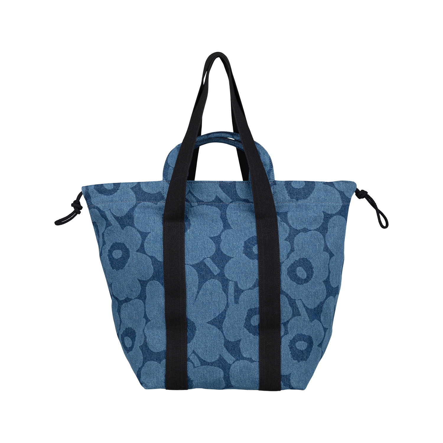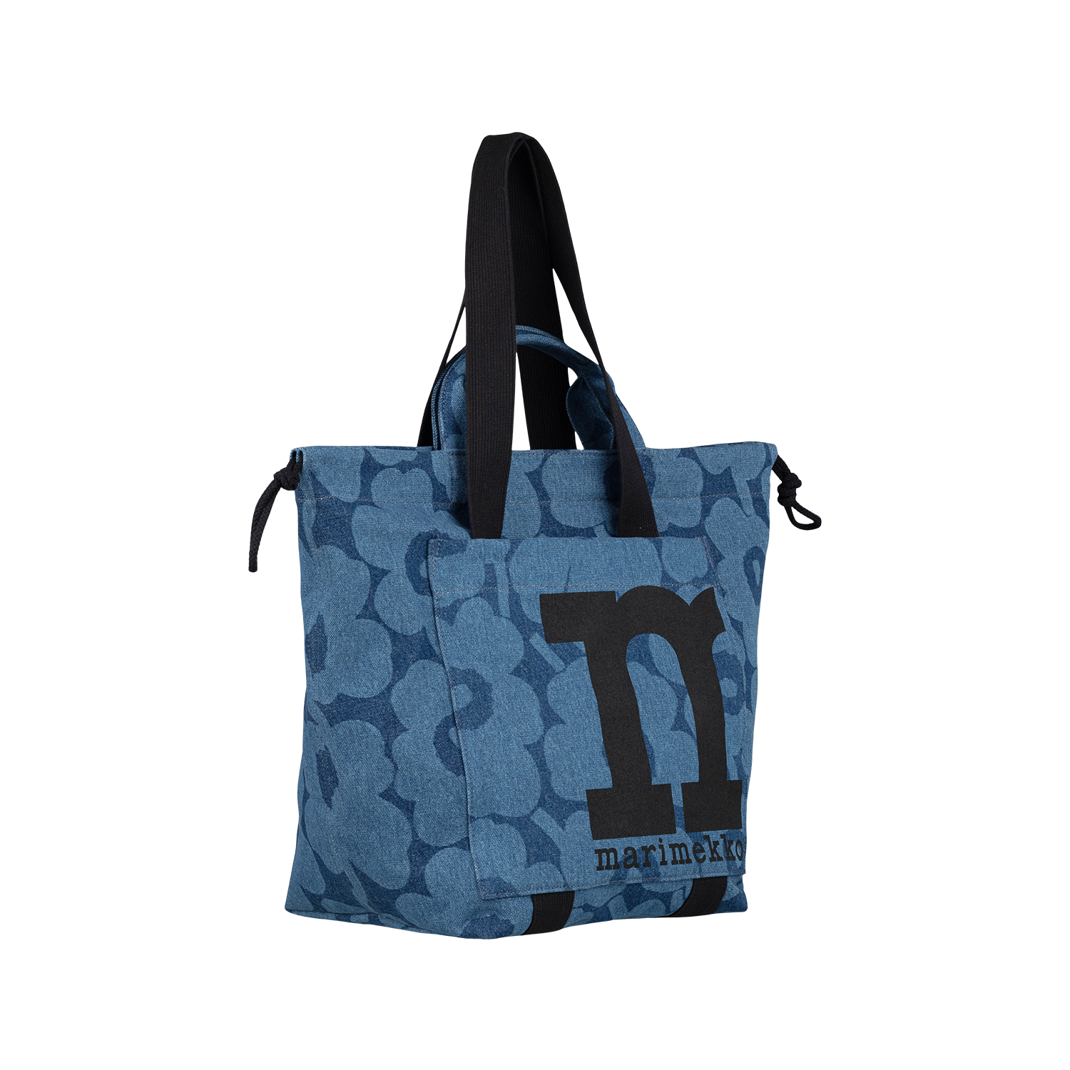 A bold, denim-forward take on Marimekko’s most iconic pattern defines the Unikko Mono City Tote. Crafted from sturdy cotton denim with organic and recycled fibers, this bag balances relaxed structure with everyday durability. The oversized Unikko print in rich indigo gives it a graphic presence, while the large exterior pocket with the signature Marimekko “M” adds both function and visual impact. Short and long handles offer flexible carry, and adjustable side drawstrings let you customize the silhouette. Spacious, practical, and unmistakably Marimekko, this tote is designed for busy days that call for style with substance.