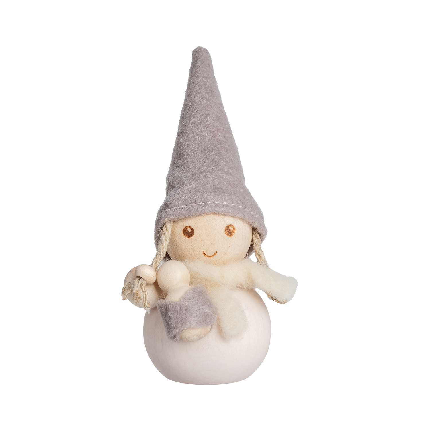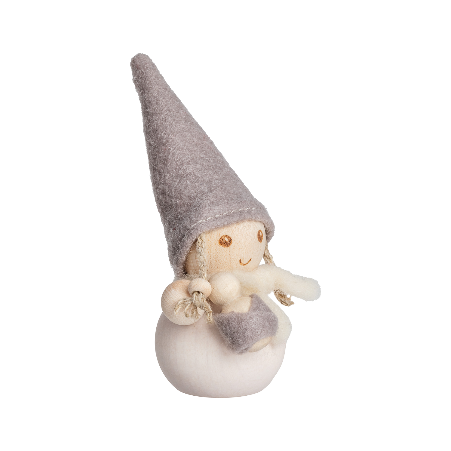 A tender moment captured in wood and wool. The Aarikka Frost Tonttu – Baby Sitter radiates quiet warmth, holding a tiny child close beneath a soft felt hat and scarf. Handcrafted in Finland from maple beads and merino wool, this gentle figure embodies Aarikka’s love for simple beauty and heartfelt storytelling. In soothing shades of white and grey, it brings a touch of Nordic calm to any setting—whether on a table, windowsill, or as a thoughtful gift celebrating care, family, and Finnish craftsmanship.