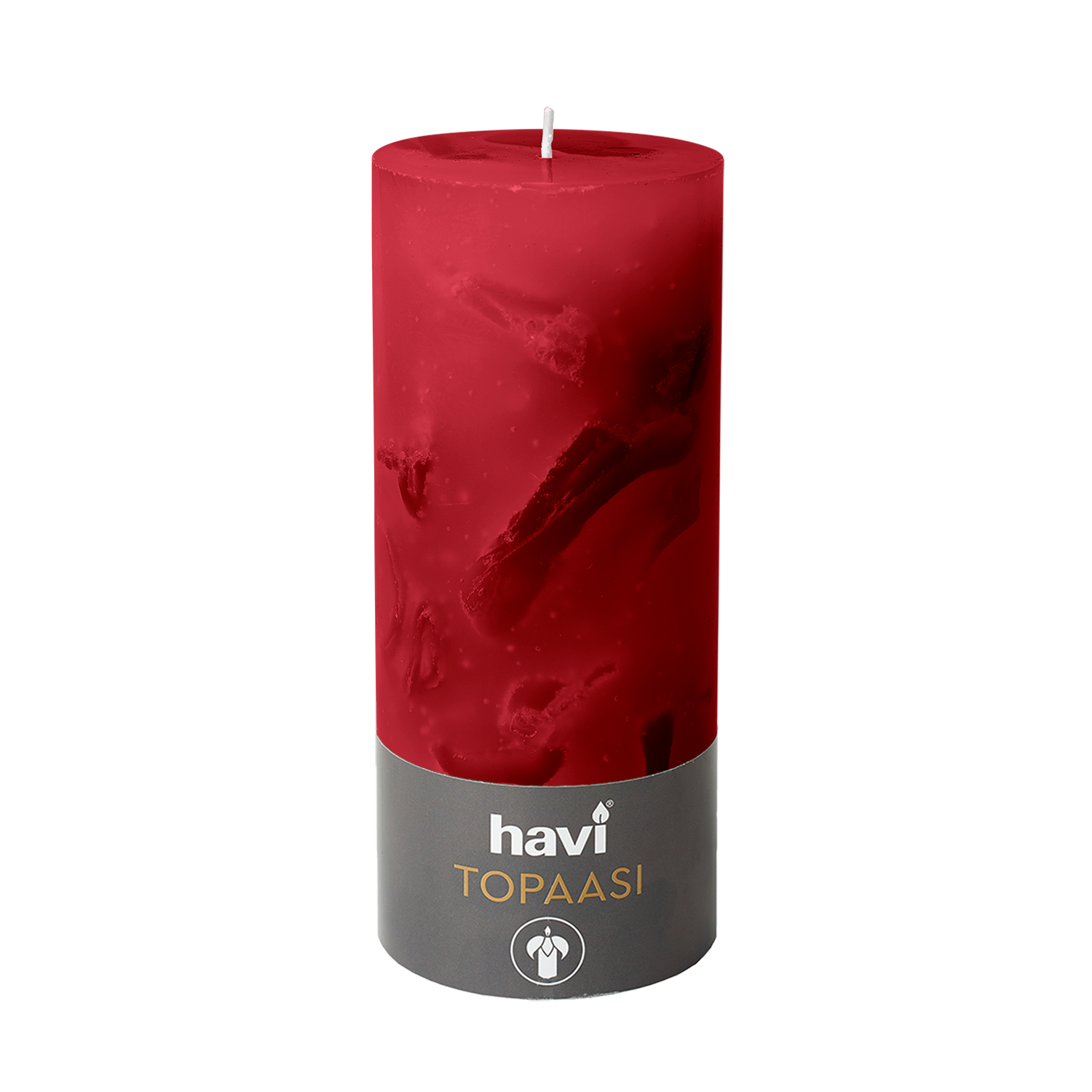 The Topaasi red pillar candle from Havi brings an inviting, timeless ambiance to any room, with a burn time of 65 hours.