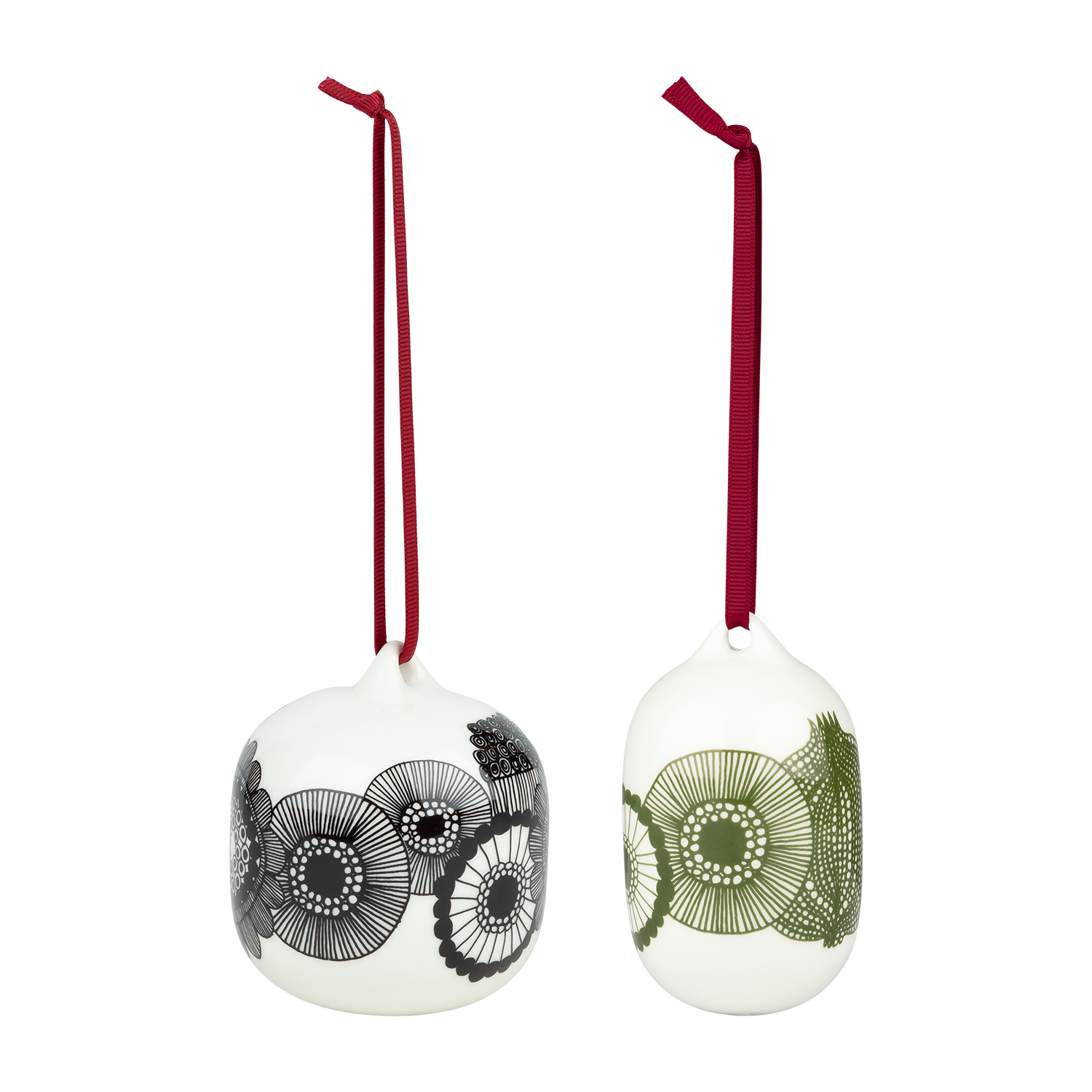 Crafted from white stoneware and stamped with the year of production, each ornament is a lasting keepsake for Marimekko enthusiasts. The set includes two ornaments, packaged in a Marimekko gift box—perfect for gifting or treasuring year after year.