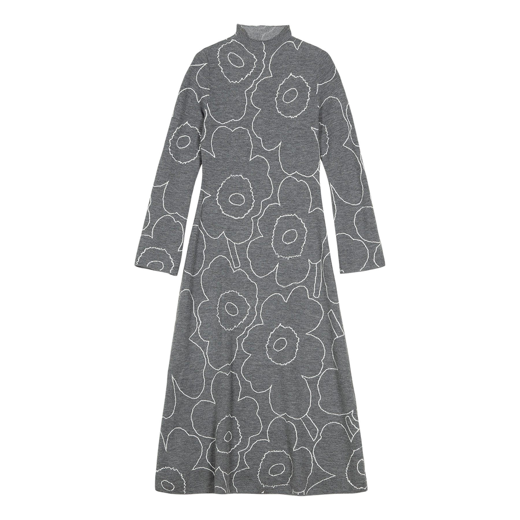 Marimekko Willat Piirto Unikko Knitted Dress, dk.grey/off-white